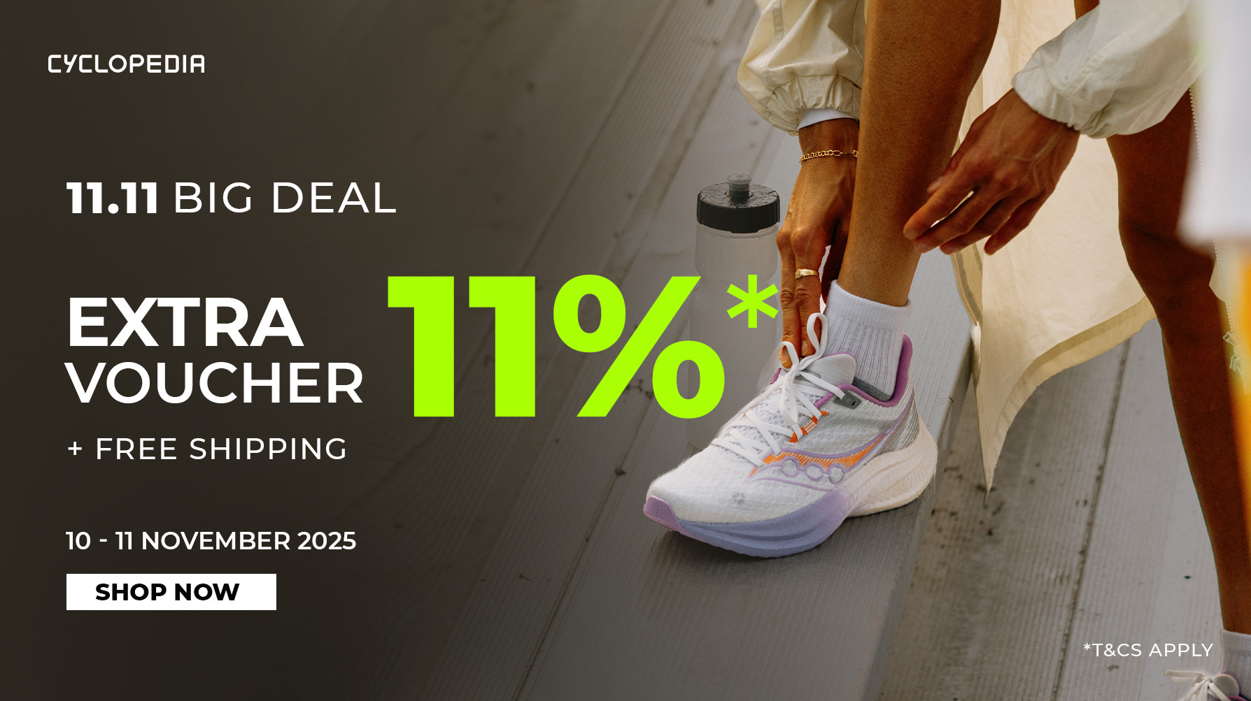 11.11 Big Deal hadir cuma 2 hari! Di tanggal 10–11 Nov, nikmati tambahan diskon 11%* + gratis ongkir hanya di aplikasi Cyclopedia. Belanja perlengkapan olahraga & lifestyle-mu sekarang dan rasakan hematnya!