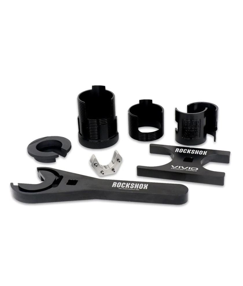 The Vivid C1 tool kit contains the model-specific tools you’ll need for completing the 200-hour service for Vivid C1 (2024+) rear shocks. Required for the 200-hour service on RockShox Vivid C1 (2024+) rear shock models.