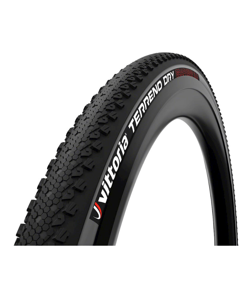 The high-performance semi-slick cyclocross tire closes the gap between classic all-purpose and aggressive file profiles! With the honeycomb profile trimmed by Vittoria for speed, you make sure you cross the target in front of the others without losing performance in braking behavior. Traction is not neglected with the Terreno Dry. The fast rolling side studs keep you in turns without slowing down on the track.