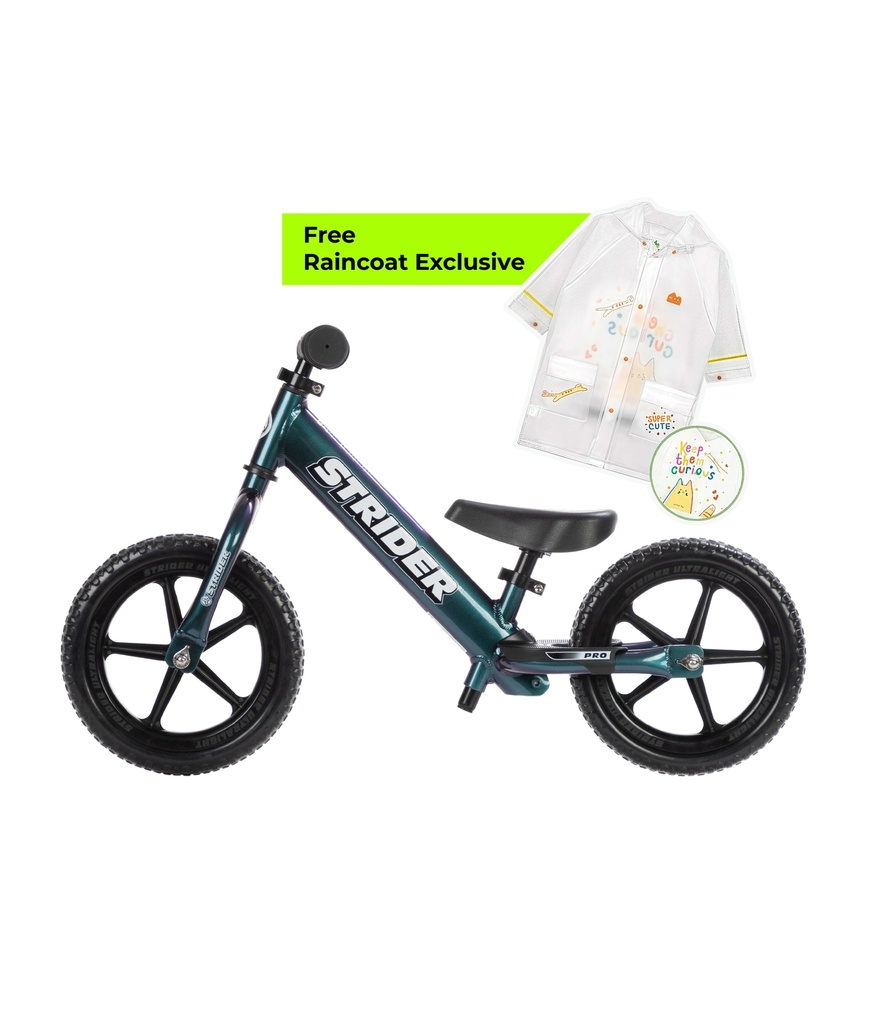 A little dirt never hurts anyone and a child who wants to go fast and get dirty needs the right tools. We create kids who have the moxie to say, “Bring it on. Challenge me. I’m ready, world.” The Strider 12 Pro Balance Bike is the bike of choice for kids who don’t just want to go fast but need to go fast… the rest of the world will catch up later, if it can. Not even a full diaper is enough to slow the 12 Pro down. Designed for little racers, the premium Strider 12 Pro Balance Bike is the ultra-light, high-end bike for tiny speed demons who crave the wind in their face and freedom at their fingertips. An all-aluminum frame that barely tips the scale at 2.54 kg (5.6 lbs.), a textured performance footrest, and an official Strider number plate all mean your little dirt devil is going to be spinning up tornadoes around the other kids at the park. With a seat height range from 28-48 cm (11-19 in.), the Strider 12 Pro perfectly fits children with an inseam of 30-51 cm (12-20 in.).