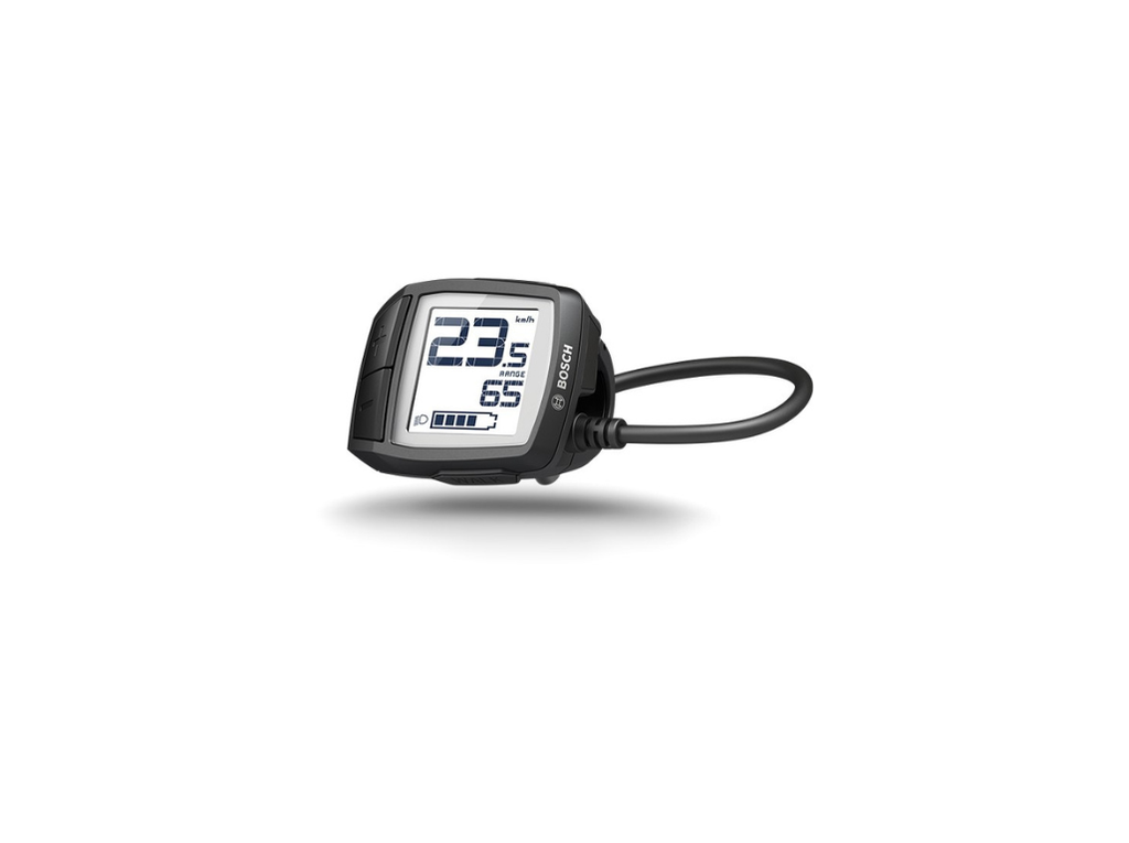 The minimalist on-board computer concentrates on essential ride information (riding mode, range, trip distance)