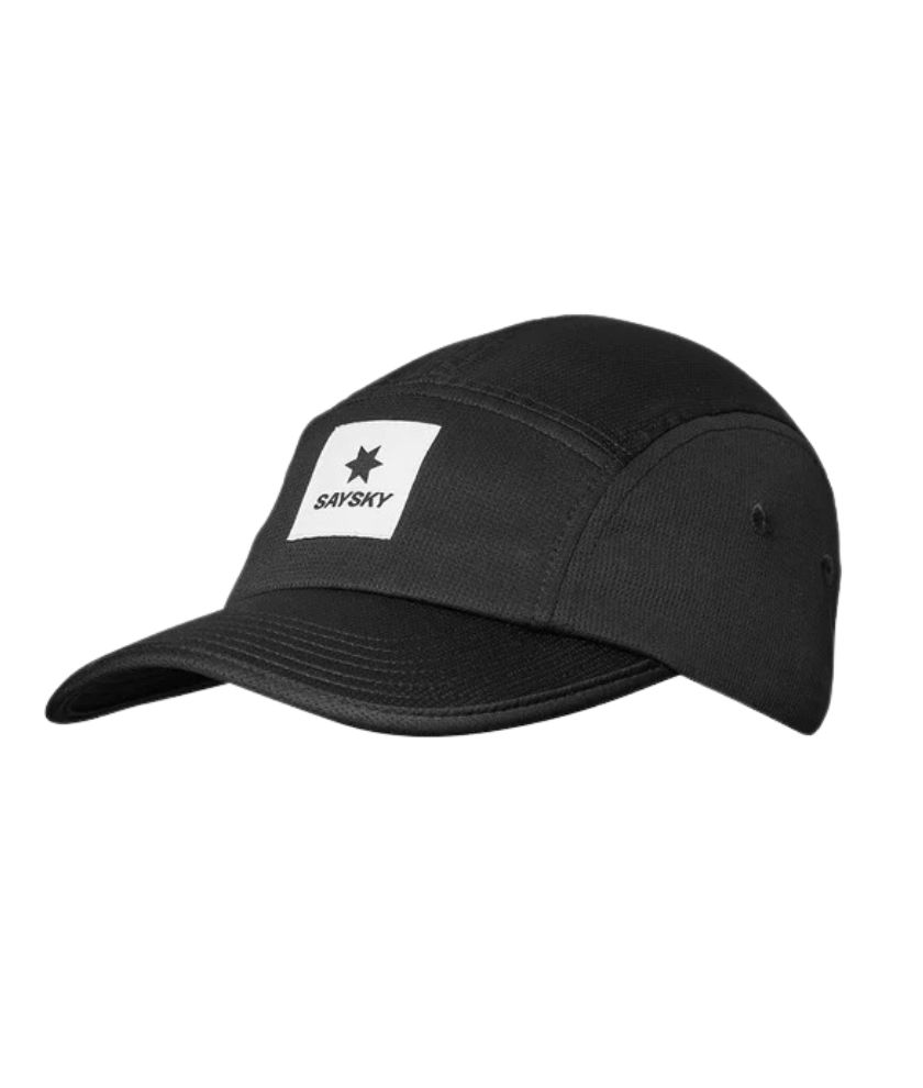 The SAYSKY Combat Cap is a 5-panel cap made for running. It comes in white with a SAYSKY label on the front.