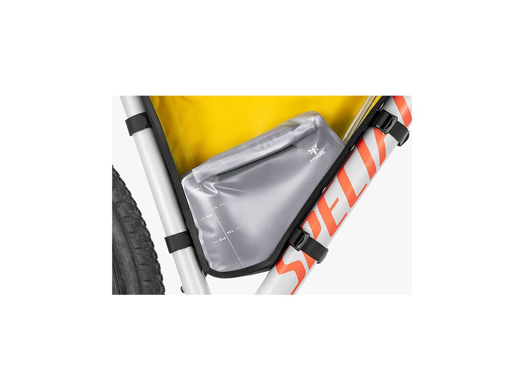 As the first bikepacking-specific frame bag hydration bladder, it makes efficient use of space, so you don’t need to compromise between carrying water and other essentials. The hydration bladder is compatible with all Apidura Full Frame Packs and packs of a similar size, with a 1.2m long detachable hose designed to route through the hydration port to your cockpit for easy use while riding.