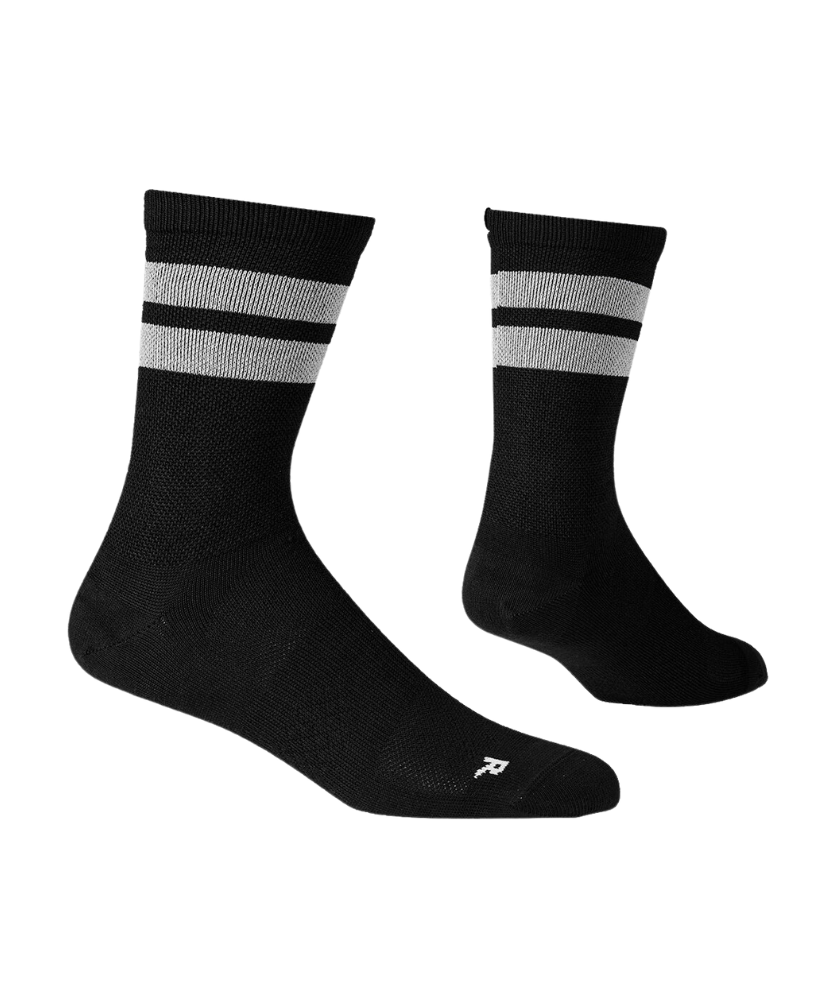 The SAYSKY High Merino Socks are running socks made in a technical blend with 30% merino wool. They are perfect for winter running because of the merino wool mix, which makes them warmer than our other socks. Due to merino wools abilities these socks are highly breathable, and will keep your feet dry and comfortable while running. They come in black with reflective stripes.