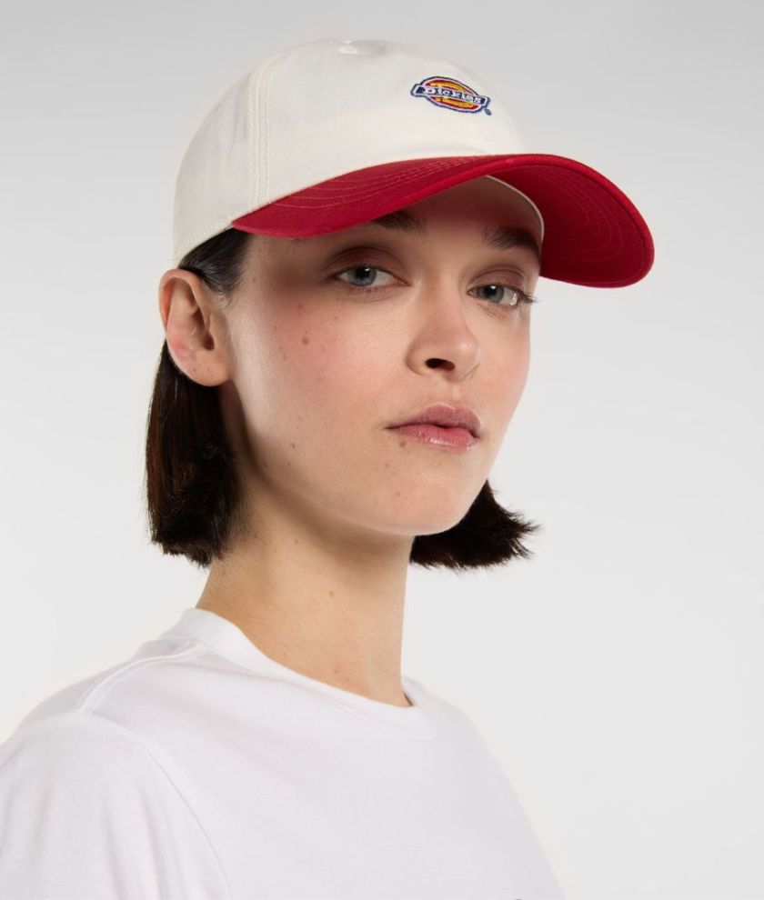 Crafted with authentic details, the Hardwick Two-Tone is a timeless 6-panel baseball cap that will never go out of style. It's made from hardwearing cotton twill with an adjustable snapback closure, two-tone panelling, a top stitch on the peak and classic Dickies logo embroidery on the front.