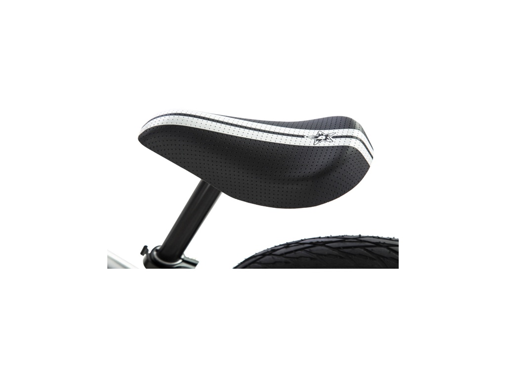 It is a toddler-sized BMX style seat. It's great looking but also very functional for the kids that love to jump and wheelie! The seat post is integrated to cut weight. However, you lose the ability to customize the fit.