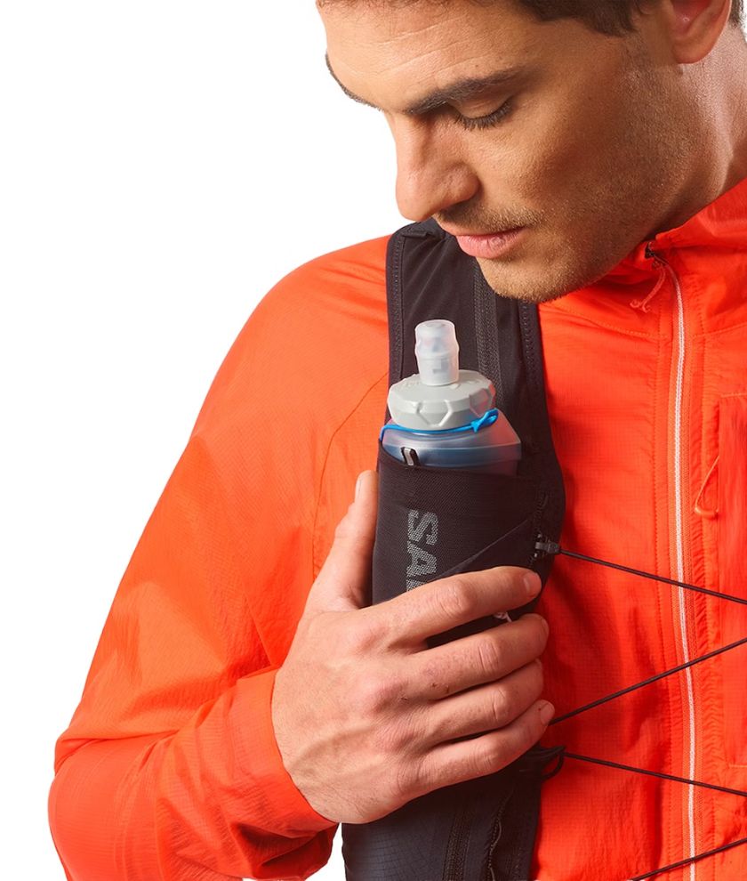 The Soft Flask 500ml/17oz is an ideal bottle to take with you while running. The soft bottle shrinks while drinking. The bottle is compressed while drinking to prevent the water from sloshing around. You don't have to suck as hard while drinking.