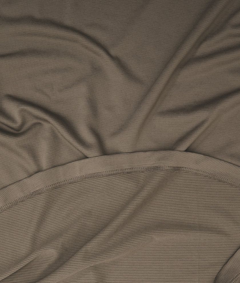 - Waffle fabric construction for improved anti-cling and sweat evaporation.