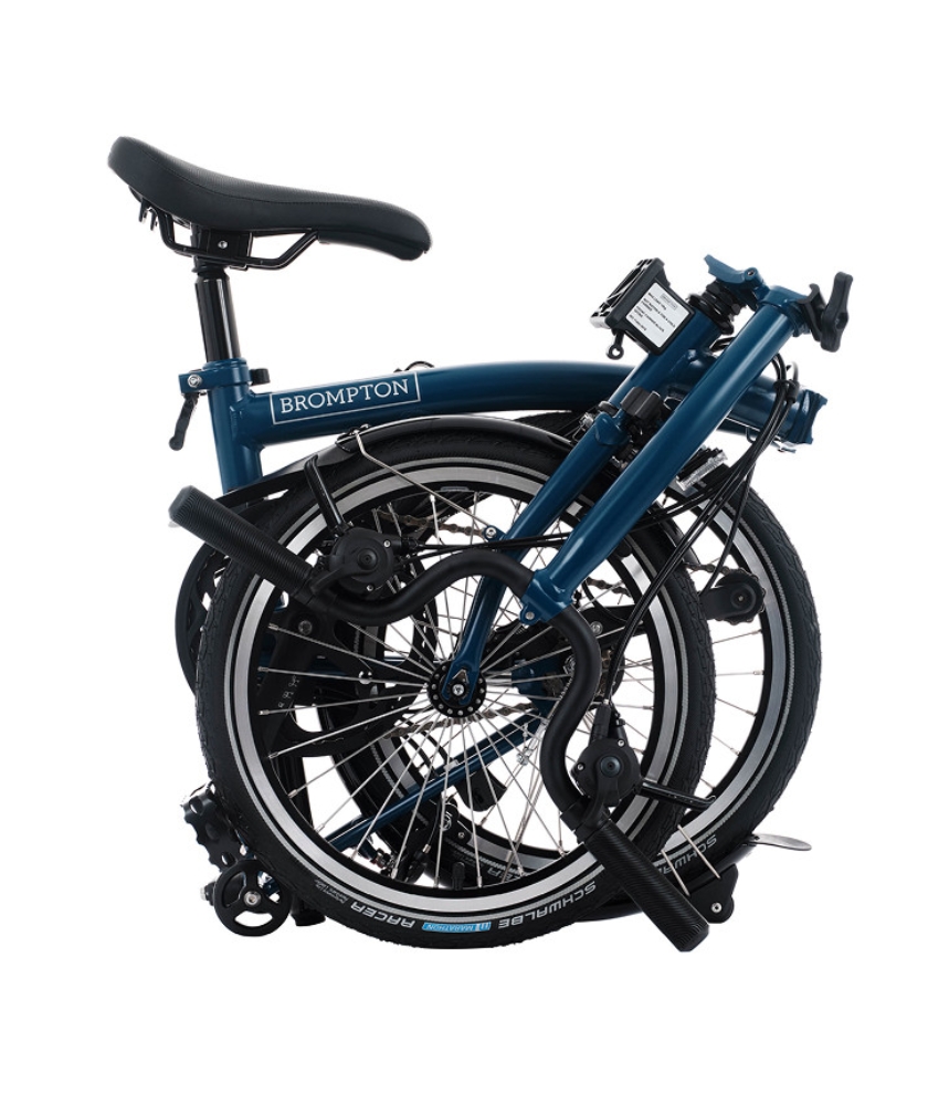Lift, carry and store. Or fold halfway to tow, roll or glide. Like a small suitcase, your Brompton moves through the day easily - everything connects.