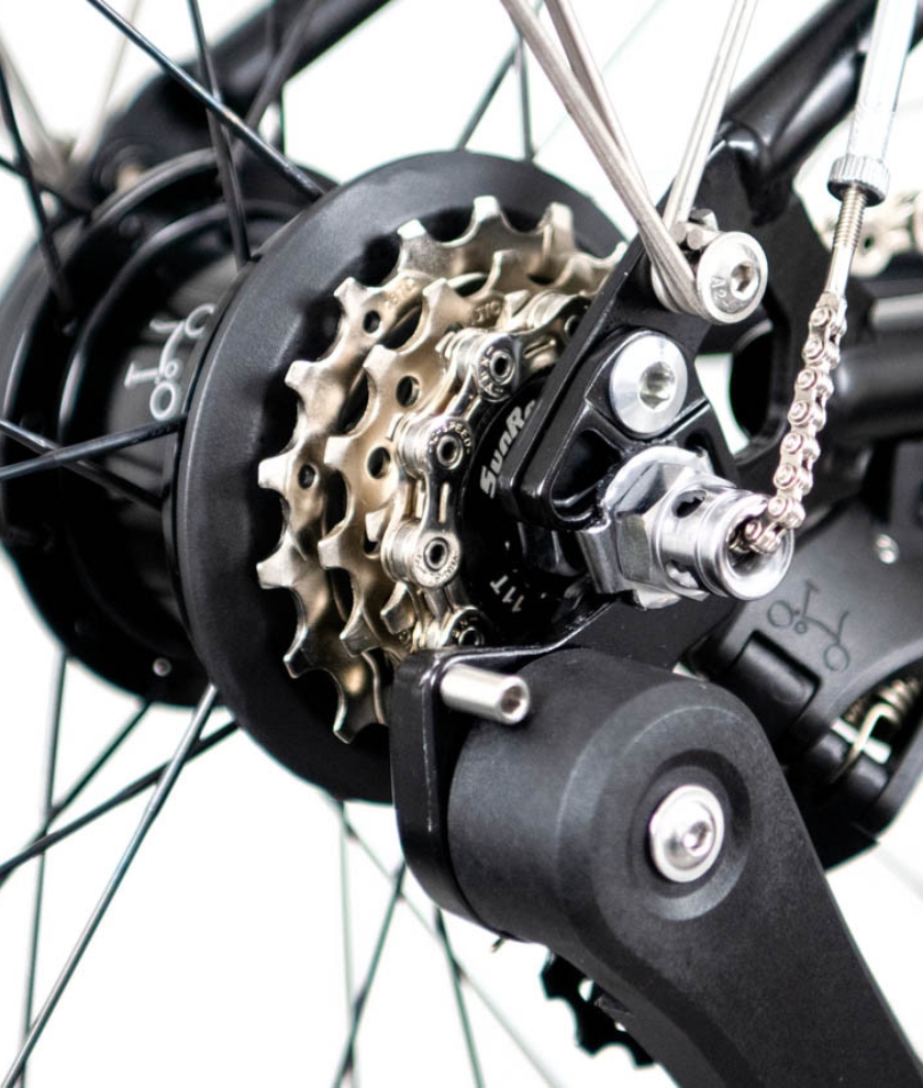From a go-anywhere bike into a small, locked package in under 20-seconds. Everything folds, even the pedal.