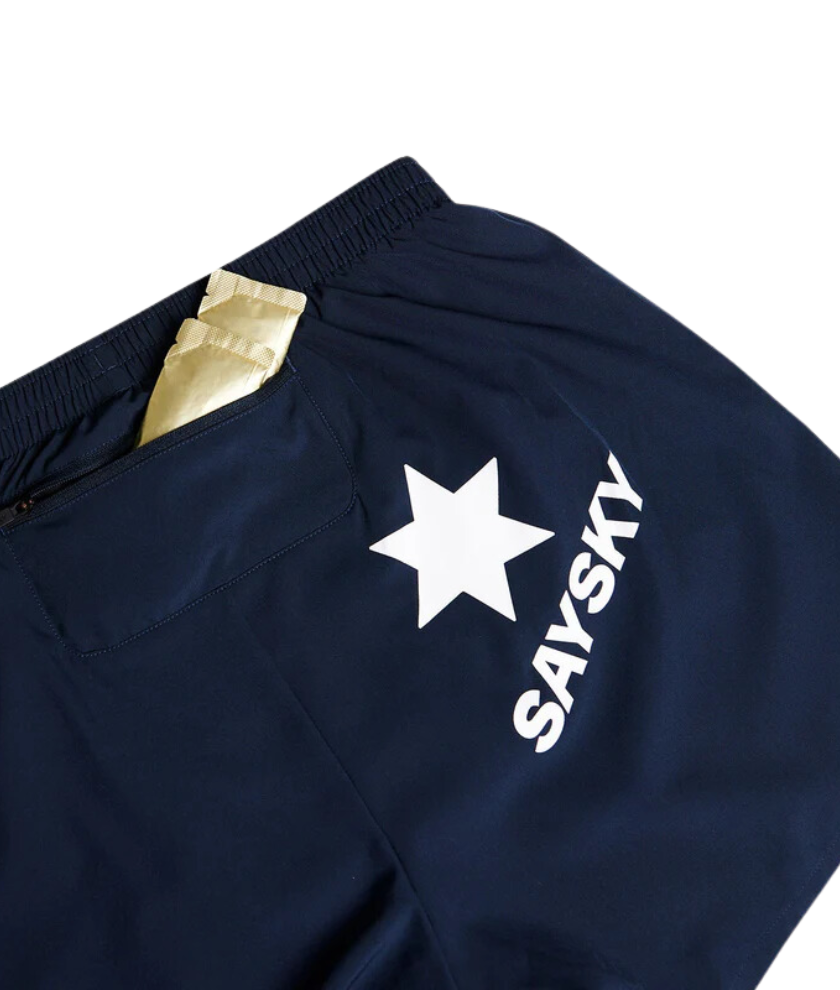 The SAYSKY Pace Shorts 5'' are a classic pair of running shorts - just a whole lot better. This is one of the all-time best-sellers and for good reasons. They're incredible lightweight and breathable, with a regular fit that's designed for high performance. This version is blue with a white SAYSKY logo on the back and a woven label on the front.