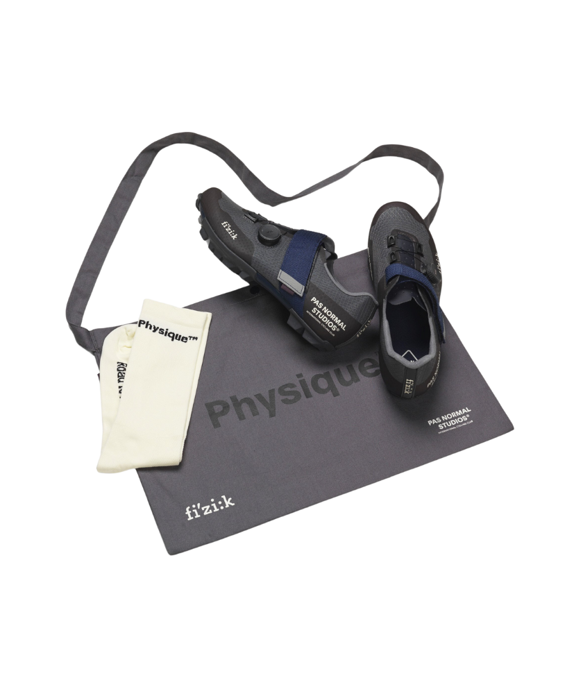 As part of the collaboration, we have produced a limited edition shoe bag and a pair of Pas Normal Studios x Fizik cycling socks - both included in the bag. The Shoe Bag comes with a double-sided PNS and Fizik logo design. The Socks is based on our trusted Mechanism Socks and has both PNS and Fizik branding.