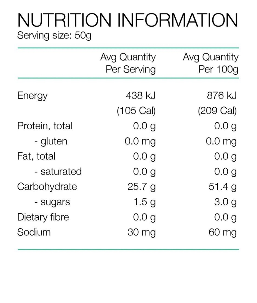 - 25g carbohydrates per serve