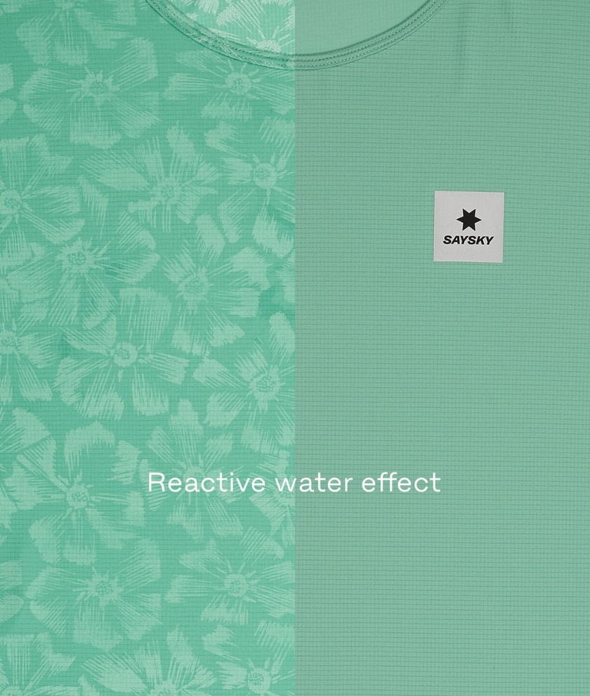 The SAYSKY Reactive Flow T-shirt is made for runners chasing both performance and style. The lightweight, quick-drying fabric feels soft on the skin and offers full freedom of movement. Designed with cutting-edge technology, this singlet transforms as you move—revealing a hidden flower print when exposed to sweat or water.