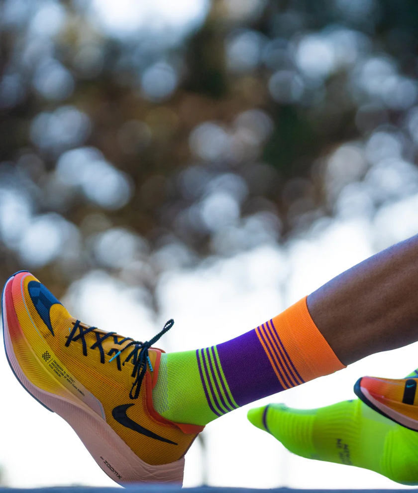 Running socks with greater support in the ankle and metatarsal areas. They offer a medium level of compression that helps blood circulation and reduces inflammation in longer runs. The heel and toe are made of COOLMAX® terry cloth to minimize impact, creating a greater sensation of comfort and breathability. They prevent and avoid the appearance of blisters.