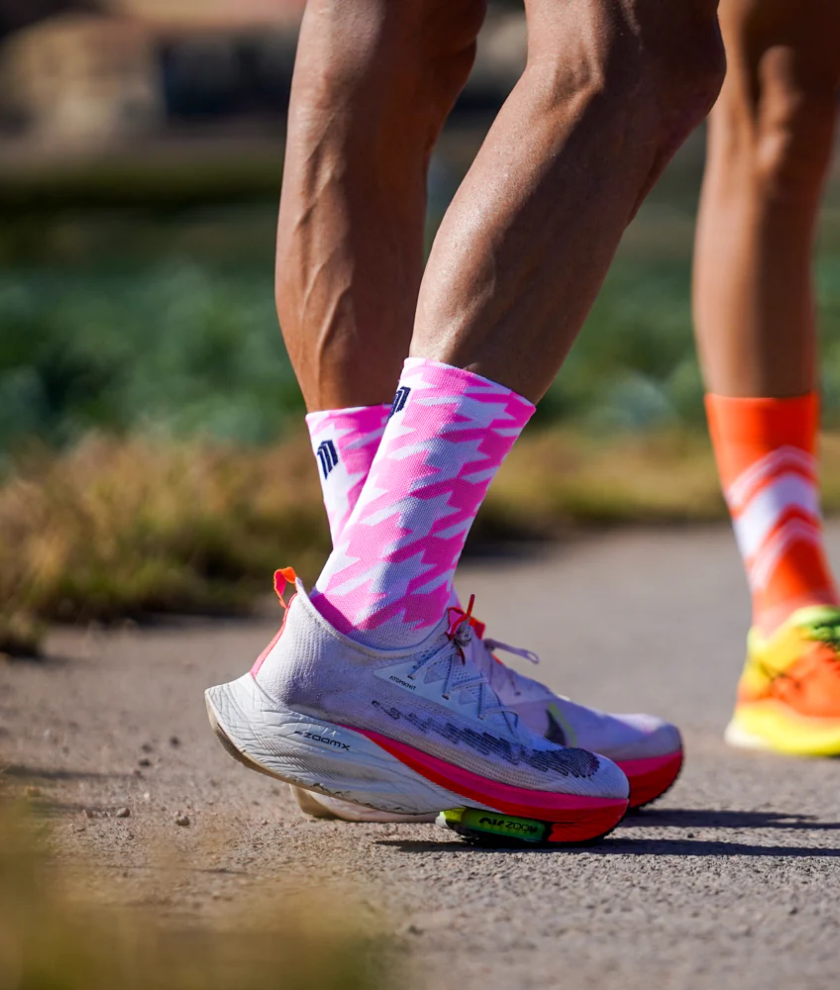 Running sock with greater support in the ankle and metatarsal area. It has a medium compression level that helps blood circulation and reduces inflammation during longer runs. The heel and toe are made of COOLMAX® terry cloth to minimize impact, creating a greater feeling of comfort and breathability. Prevents and prevents the appearance of blisters.