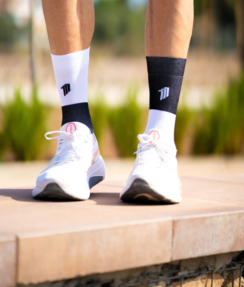 Running sock with greater support in the ankle and metatarsal area. It has a medium compression level that helps blood circulation and reduces inflammation during longer runs. The heel and toe are made of COOLMAX® terry cloth to minimize impact, creating a greater feeling of comfort and breathability. Prevents and prevents the appearance of blisters.