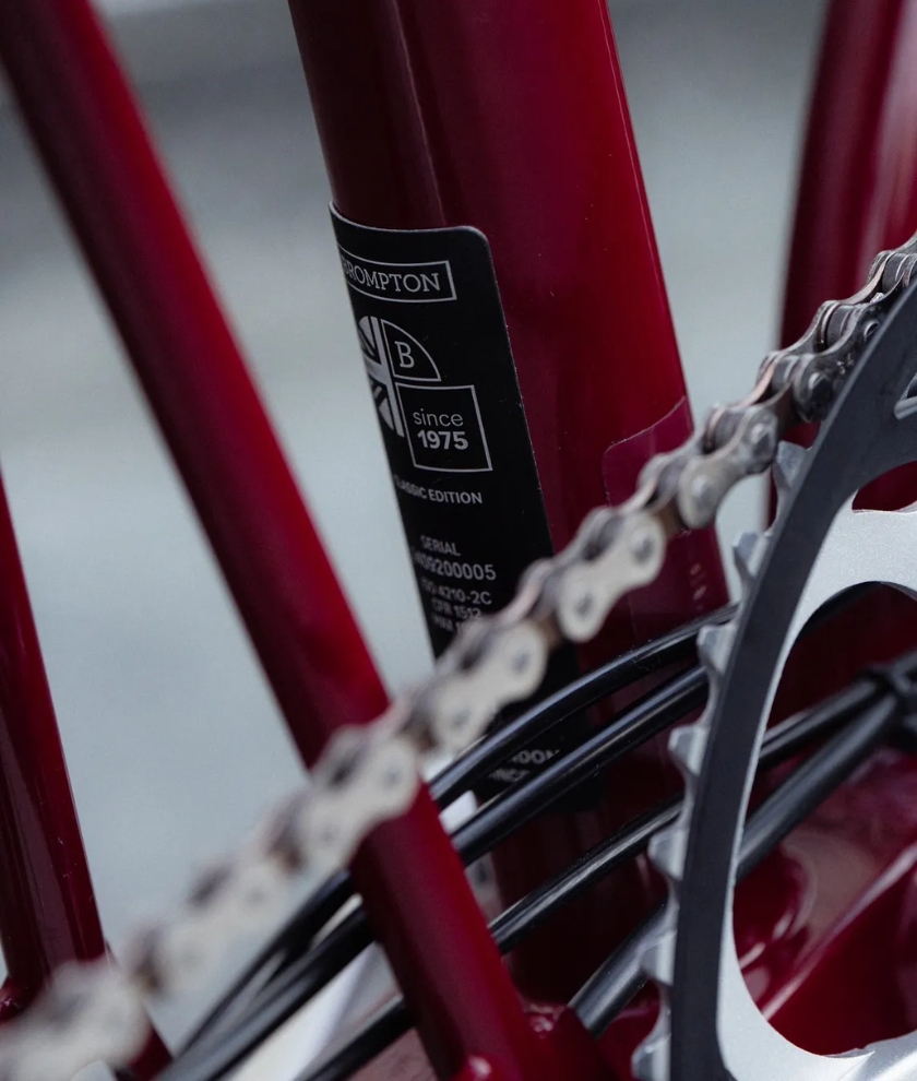 Each bike is hand-built in our London Factory with design details true to the first models – silver parts, Brooks saddle (a favourite of Brompton inventor Andrew Ritchie) and a gloss finish frame. Premium aluminum touchpoints and a Classic Edition serial plate add the finishing touch.
