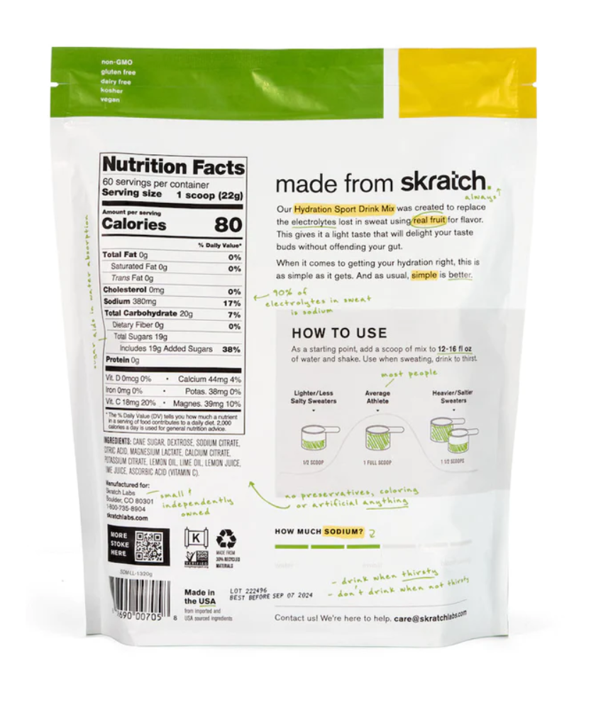 Our Hydration Sport Drink Mix was created for a simple purpose - to replace the electrolytes lost in sweat and to provide a little bit of energy when working out, without offending your palate or gut.