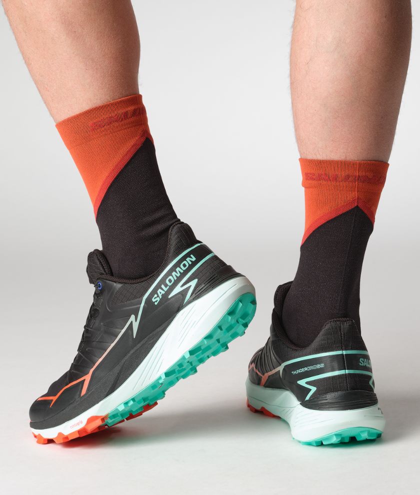 THUNDERCROSS is a trail shoe for a dynamic, cushioned ride with exceptional grip and precise foothold. Equipped with aggressive 5mm lugs to tackle any terrain, no matter how tricky, technical, or just downright nasty. Developed in the French Alps, tried and tested on everything from rolling terrain to rocky slopes or sticky single tracks.