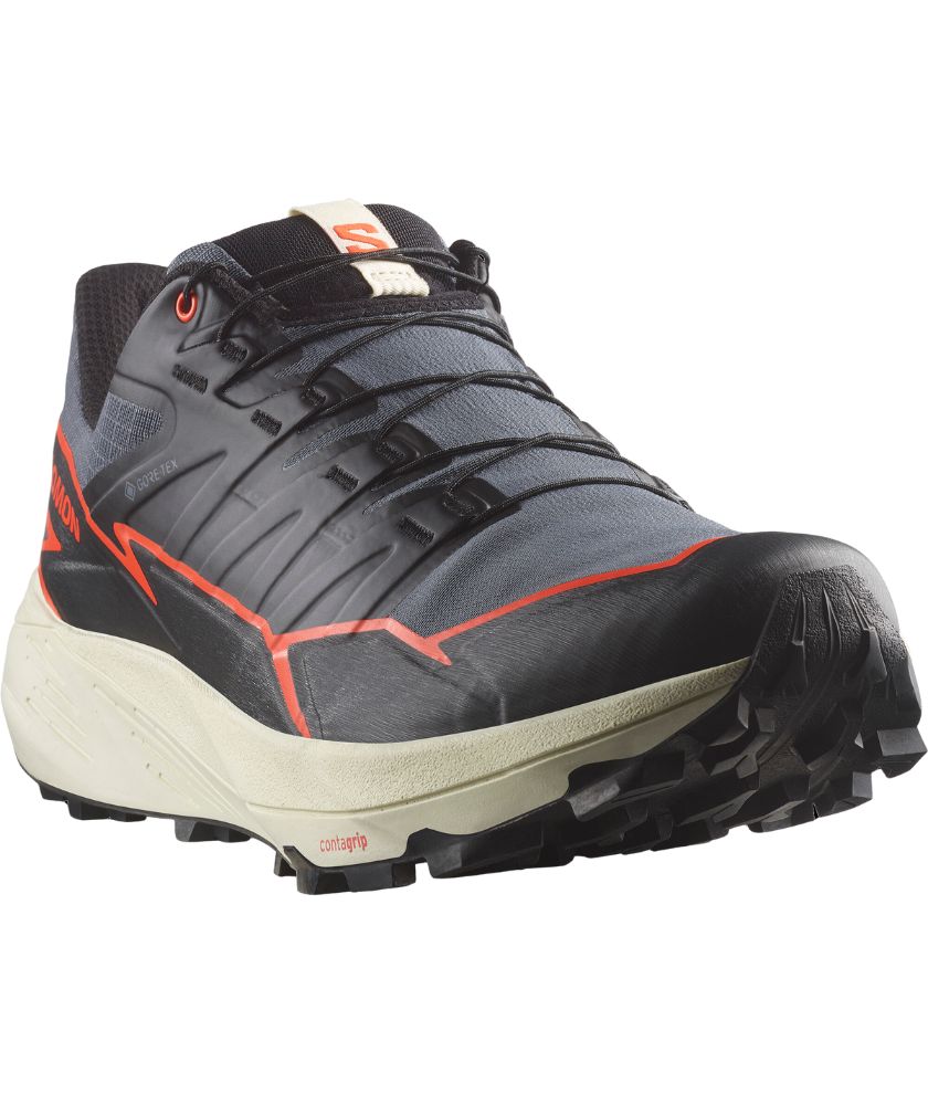THUNDERCROSS GORE-TEX is a waterproof trail shoe for a dynamic, cushioned ride with superior grip and foothold. Equipped with aggressive 5mm lugs to tackle any terrain, no matter how tricky, technical, or just downright nasty. Developed in the French Alps, tried and tested on everything from rolling terrain to rocky slopes or sticky single tracks.