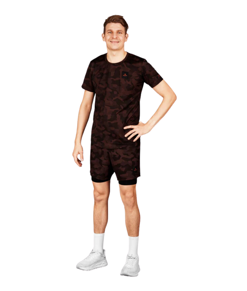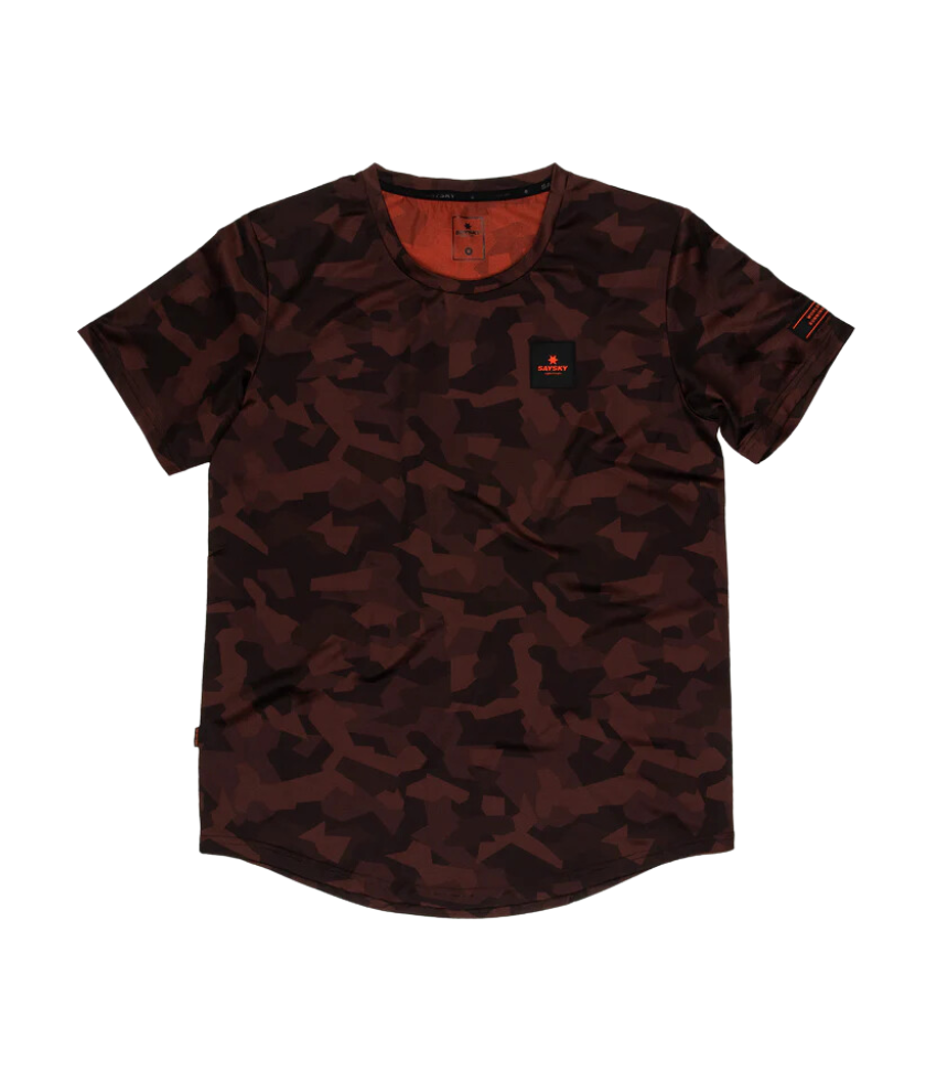 The SAYSKY Splinter Combat T-shirt is a unisex short sleeve running t-shirt in a burgundy splinter camo print. It's made from a super lightweight fabric and comes with a SAYSKY logo on the front and the back, and a WORLDWIDE RUNNING TRIBE logo on the arm. The fit is regular with a soft fabric feel and high level of breathability.