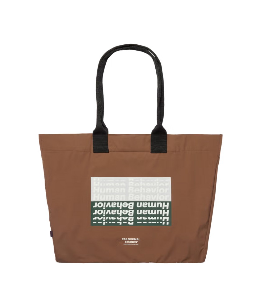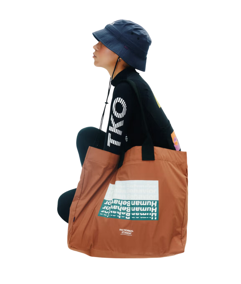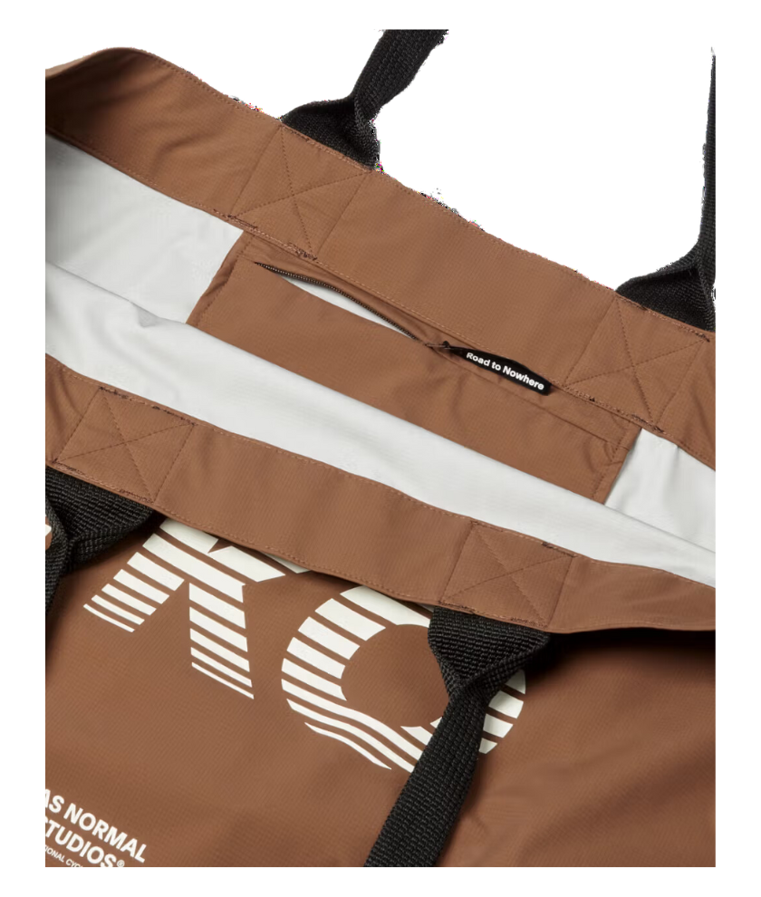 The T.K.O. Logo Shield Bag is constructed with the same Schoeller 3-layer fabric as some of our highly technical cycling gear. The 3-layer construction makes the fabric waterproof and will protect your belongings from light rain on the go. The bag has one big storage compartment and a smaller internal zippered pocket to keep your smaller essentials safe. The Shield Tote Bag has T.K.O. graphics on each side and a smaller minimalistic Pas Normal Studios logo.