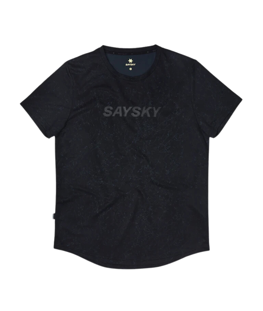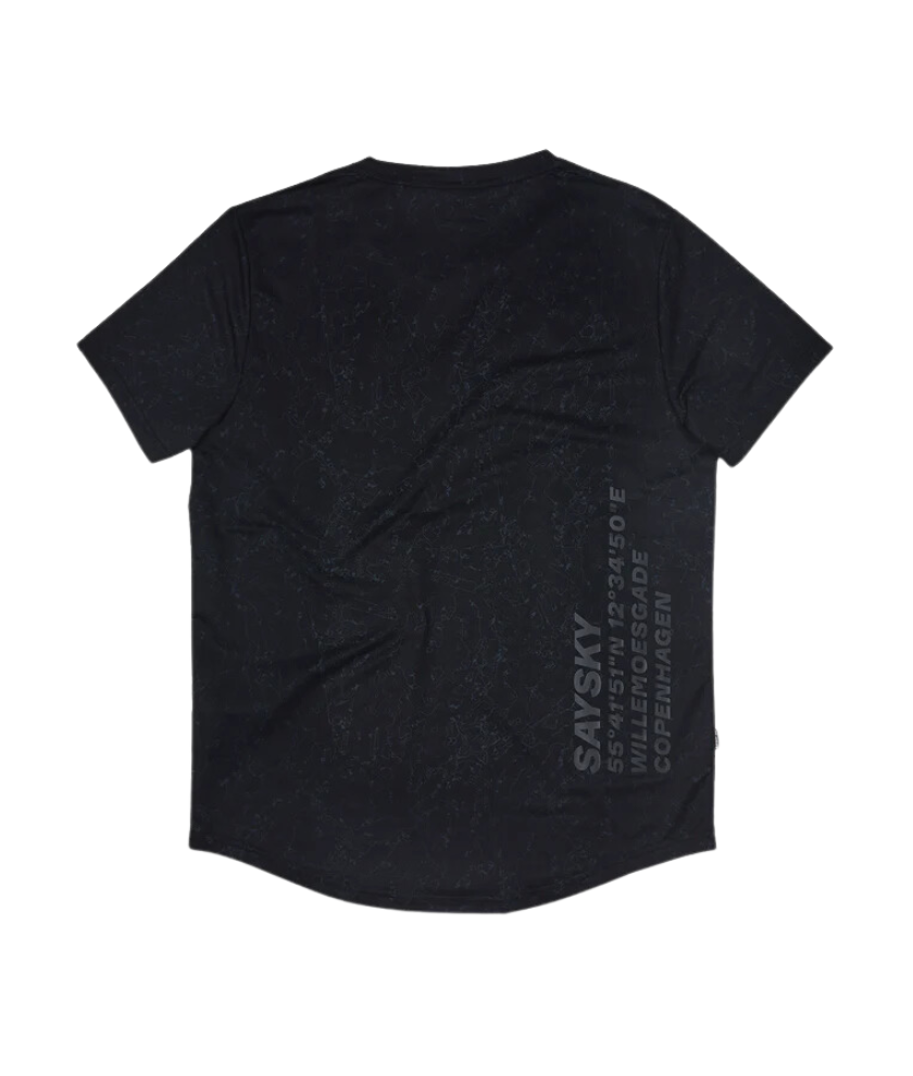 The SAYSKY men's Map Combat T-shirt is a men's short sleeve running t-shirt with the Copenhagen Origins print. The T-shirt is moisture-wicking and quick-drying, which ensures high breathability and increased airflow. The technical construction reduces the fabric’s ability to cling to your skin. It is made of 68% recycled Japanese polyester, which is a high-performance lightweight material that feels soft against the skin and offers high flexibility.