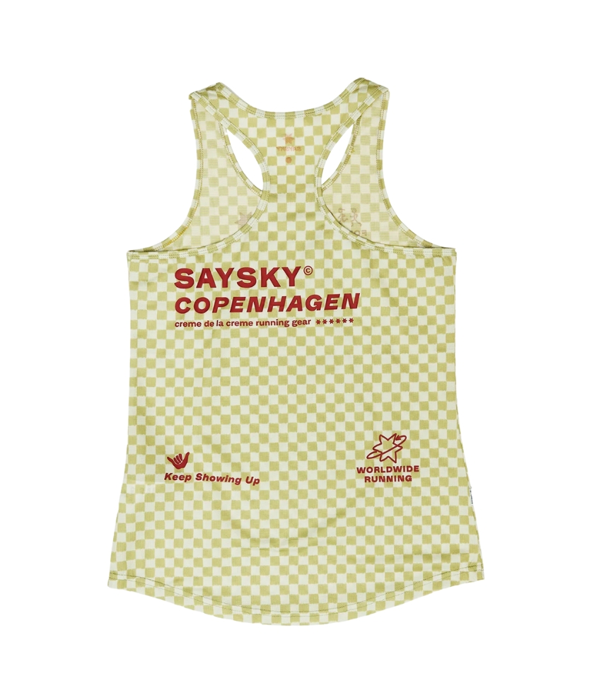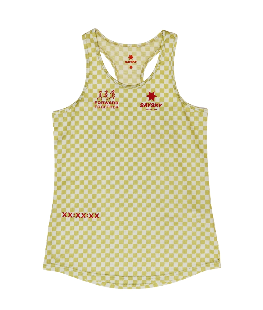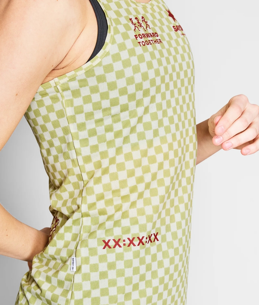 The SAYSKY Checker Combat Singlet is a race singlet for women with a stylish all-over checker pattern print and motivational statements. The singlet is moisture-wicking and quick-drying, ensuring high performance during your entire run. The technical construction reduces the fabric’s ability to cling to your skin. It is perfect for running in warmer weather, layering and as your race day outfit.