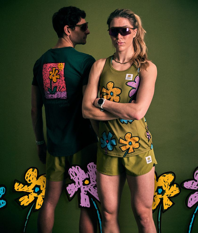 The SAYSKY Flower Combat Singlet is a regular race singlet in yellow with an allover flower print and a woven flower SAYSKY label on the front and back. The singlet is moisture-wicking and quick-drying, which ensures high breathability and increased airflow. The technical construction reduces the fabric’s ability to cling to your skin. It is made of recycled polyester, which is a high-performance lightweight material that feels soft against the skin and offers high flexibility.