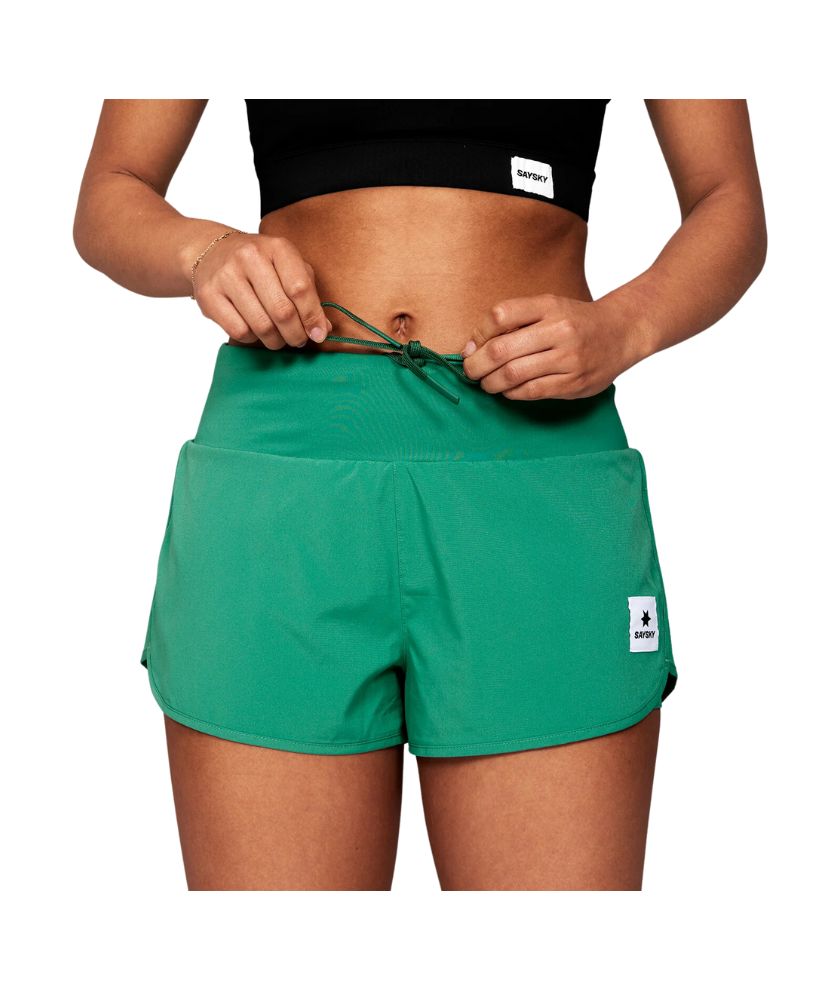 The SAYSKY Pace Shorts 3'' are a classic pair of running shorts in green for women. The fit is regular and they come with a woven SAYSKY label on the front and a SAYSKY logo on the back. These shorts are equally great whether you're going for a run or hitting the gym.