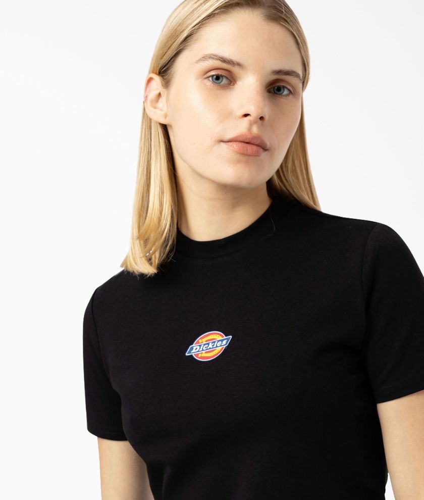 The Maple Valley Tee is a slim fit, cropped, short sleeve women’s T-shirt. A nostalgic 90’s style crew neck, featuring Dickies logo on the front. A feminine summer T-shirt made for everyday wear.