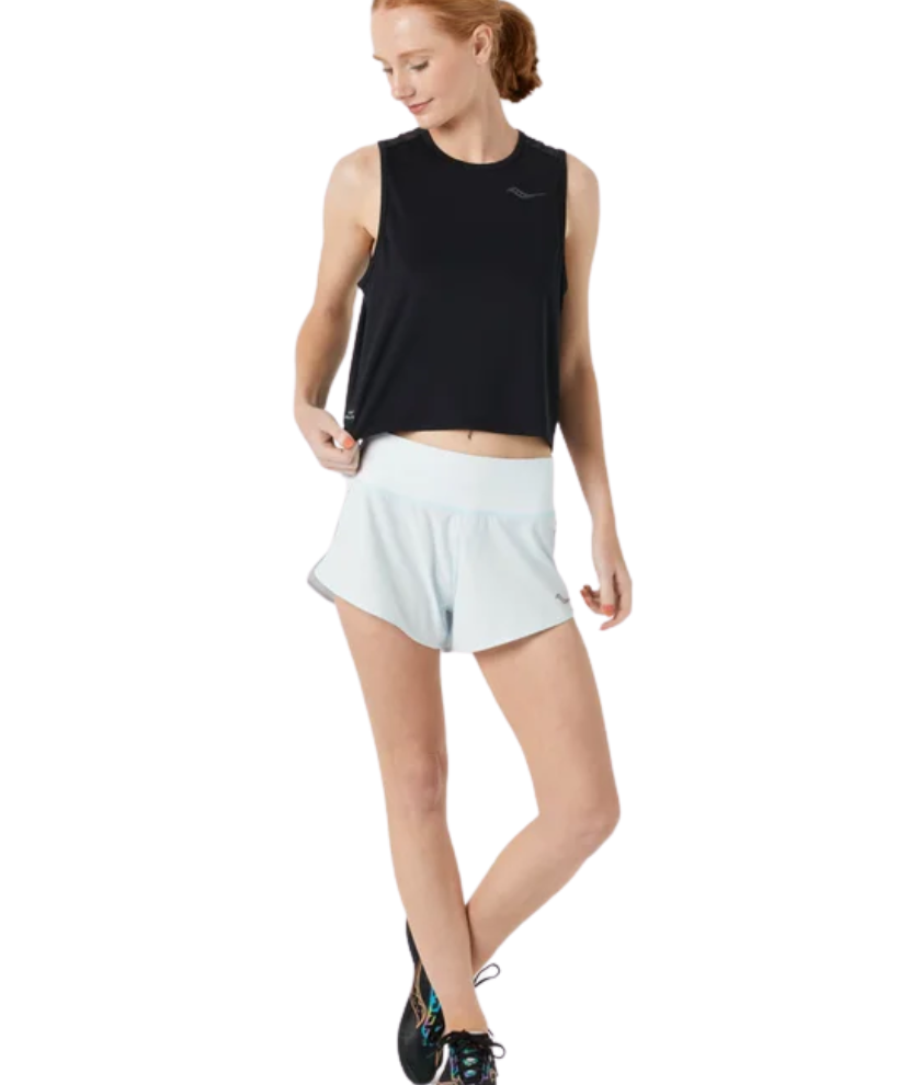 Take on any challenge with your training goals when you slide into the Saucony Women's Stopwatch Crop tank. This top features a lightweight design with extremely breathable mesh fabrication and best-in-class moisture-wicking technology to help keep you cool, comfortable, and dry. A superior 4-way stretch material allow for optimal range of movement, so nothing will slow you down as you chase miles.