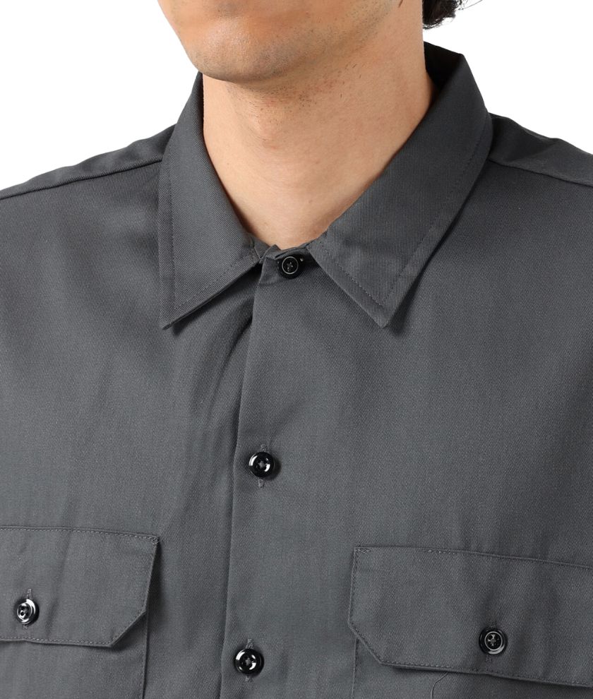 This short-sleeved work shirt is made of 5.25 oz mechanical stretch twill polyester cotton with a firm texture, and is both functional and durable. The flap pockets on both sides of the chest add a casual accent. It is smooth and light to the touch, and comfortable to wear. The loose silhouette allows you to style it without worrying. It can also be used as a jacket by opening the buttons. The design features a square tail that is designed to be long so that it can be worn with or without tucks. It is highly moisture-wicking and wrinkle-resistant, and you can enjoy styling like a set by combining the work shirt with the original 874 work pants.