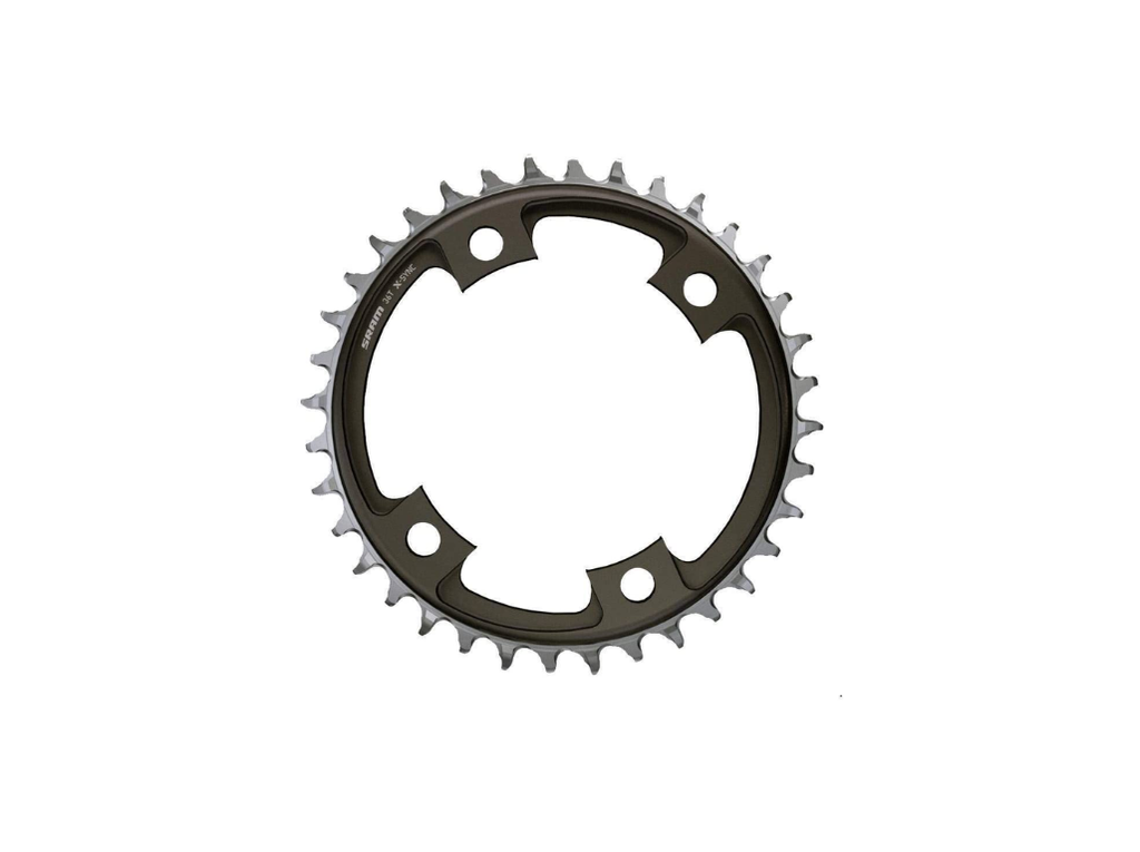 X-Sync™ 1x chainrings by SRAM provide the highest performance and durability. Long SRAM X-Sync™ tooth edges grip the chain at a higher rate than standard triangular teeth. The sharp and narrow tooth profile and the rounded beveled edges support the chain guide. To guarantee the best possible performance on muddy terrain, X-Sync™ chainrings have recesses for the inner chain links and rollers to remove dirt and mud. German-made X-Sync™ chainrings are an important part of SRAM 1x drivetrains.