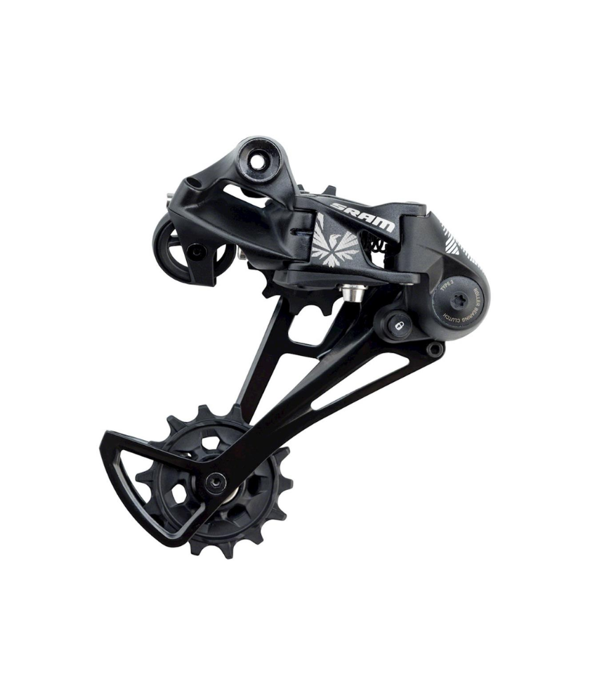 The SRAM NX Rear Derailleur features the X-Horizon 1x-specific design with the X-Sync 14-tooth lower pulley wheel to help make the smooth shifting and pedaling feel that the Eagle line is known for. Another feature of this rear derailleur is its Roller Bearing Clutch that eliminates chain slap and increases drivetrain stability. With Cage Lock, wheel changes are made easy by pushing the cage forward and locking it in place.