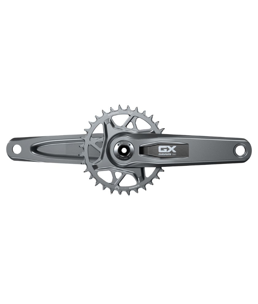 The GX Eagle crankset also stands out from the crowd with its unique shape and forged aluminum construction. This crank combines a balance of form and function with pure performance and an optimal price-performance ratio. The finishing touches are the durable aluminum chainring with its distinctive double-spoke design and the removable composite bashguards that protect against scuffs and scratches in everyday as well as off-road use.