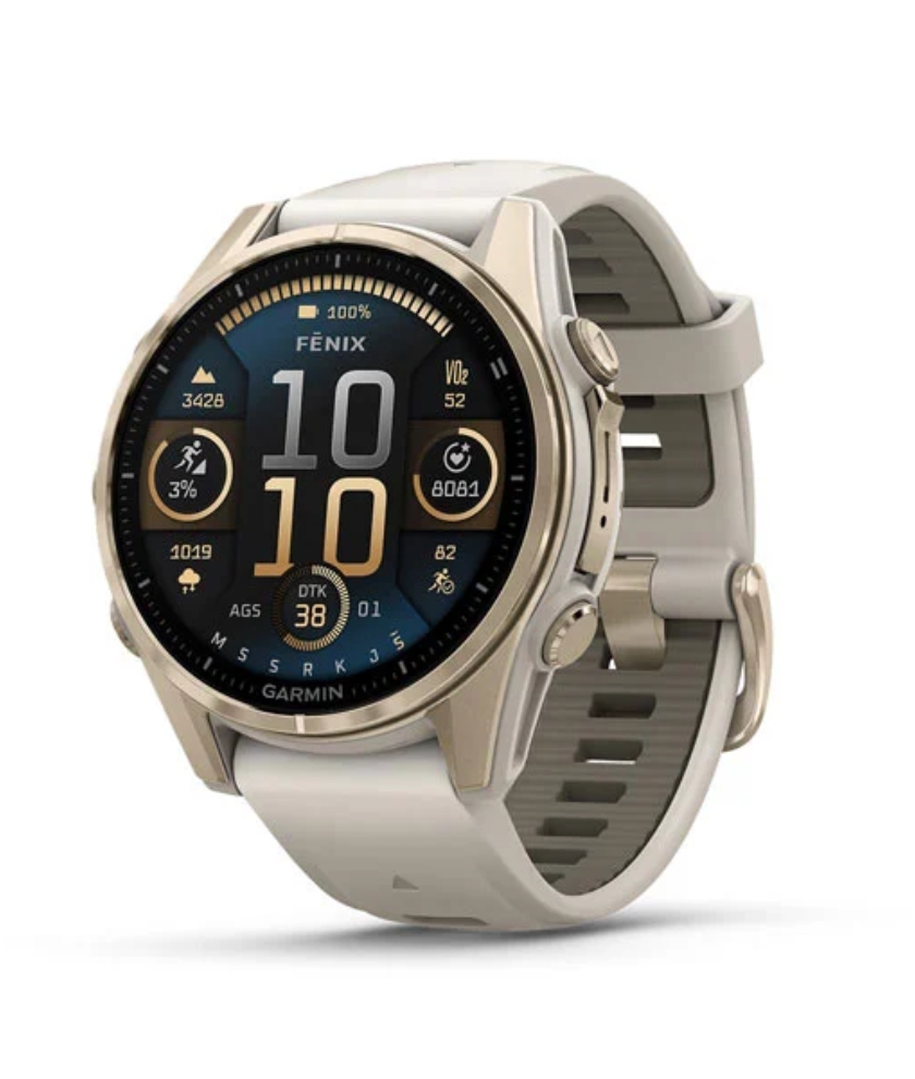 Fenix 8 Sapphire Amoled Soft Gold with Fog Gray/Dark Sandstone Silicone Band