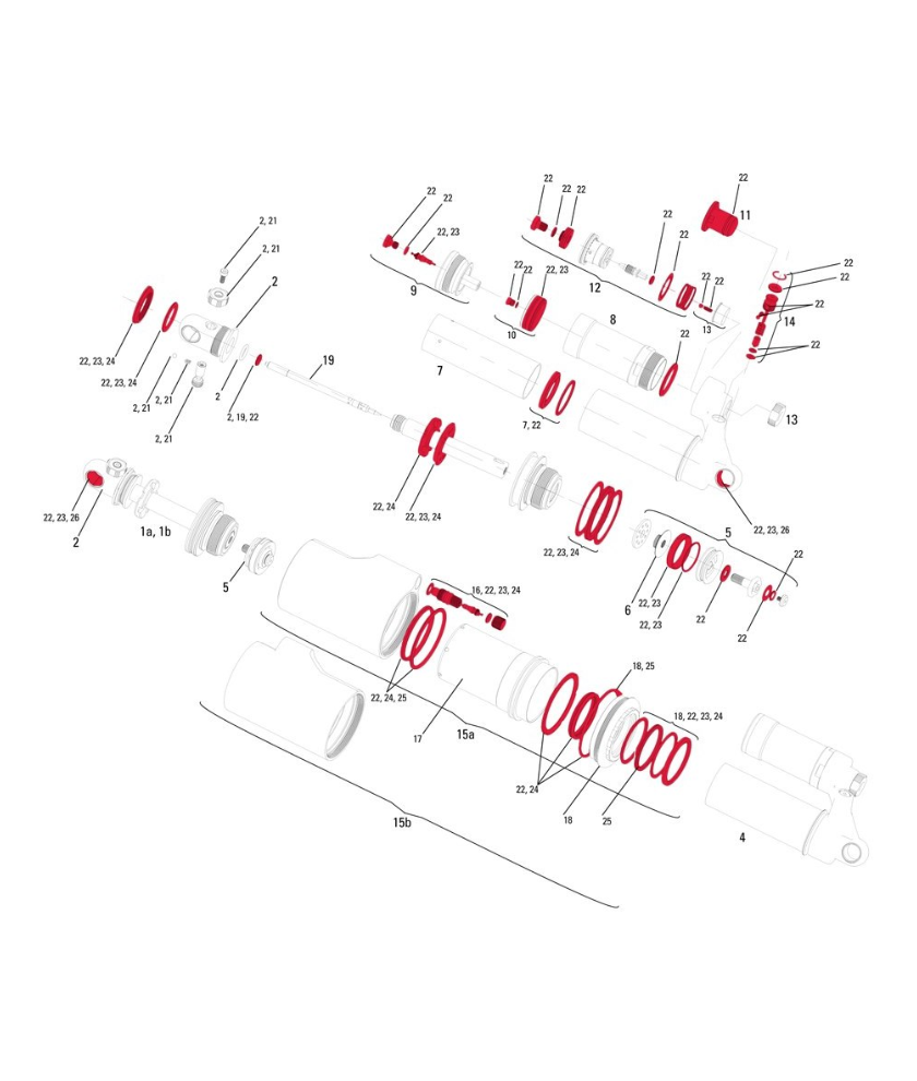 This service kit includes all spare parts for a complete service of RockShox Vivid Air rear shocks model year 2011.