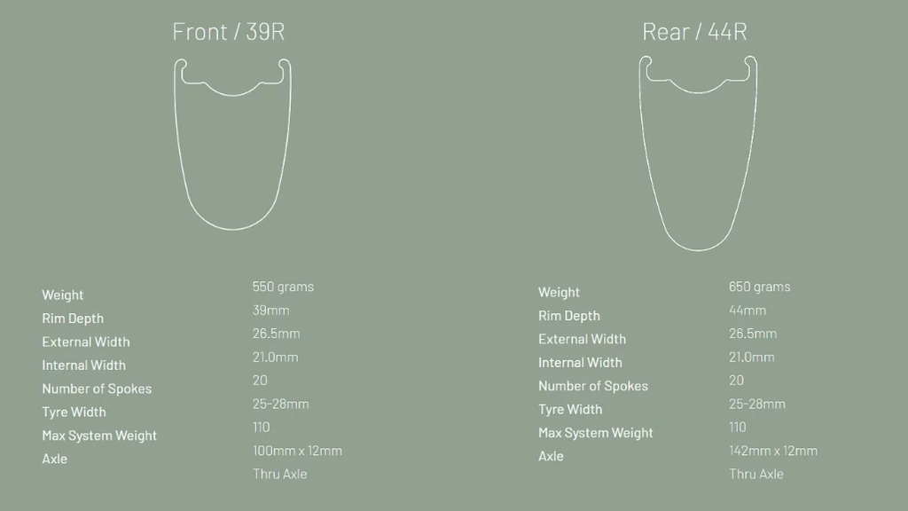 The Partington 39R/44R pairs a more blunt-nosed 39mm deep front rim profile to a deeper V 44mm deep rear that they say together optimize aerodynamic behavior in wide-ranging wind conditions making the wheels solid all-rounders.