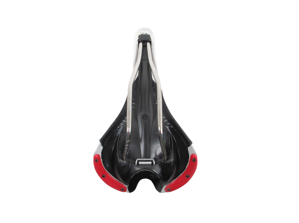 Wing Flex™ technology uses lines of elastomers in the thigh contact area which flex with the body while pedaling allowing the rider to sit back further on the saddle for greater support without the saddle getting in the way. The nylon shell reinforced with carbon keeps the saddle light and supportive and helps dampen road vibrations.
