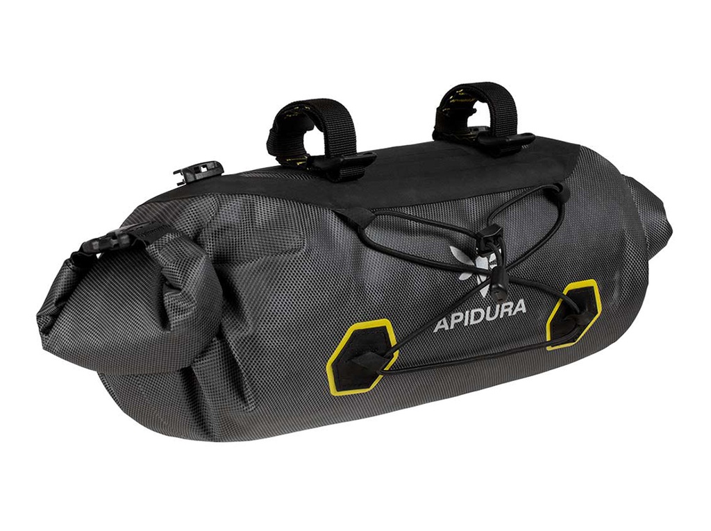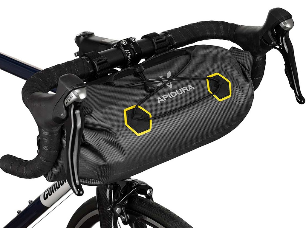 The handlebar bag is cut from a three-layer laminate fabric that was developed specially for Apidura. The material is lightweight, and is highly resistant to tears and abrasion. Notably, it's welded together at the seams, creating a watertight seal that ensures complete waterproofing.