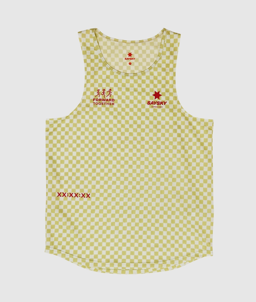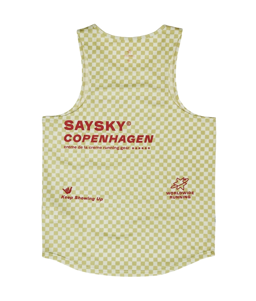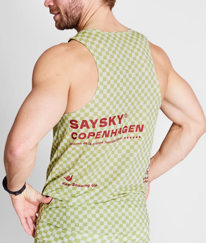 The SAYSKY Checker Combat Singlet is a race singlet for men with a stylish all-over checker pattern print and motivational statements. The singlet is moisture-wicking and quick-drying, ensuring high performance during your entire run. The technical construction reduces the fabric’s ability to cling to your skin. It is perfect for running in warmer weather, layering and as your race day outfit.