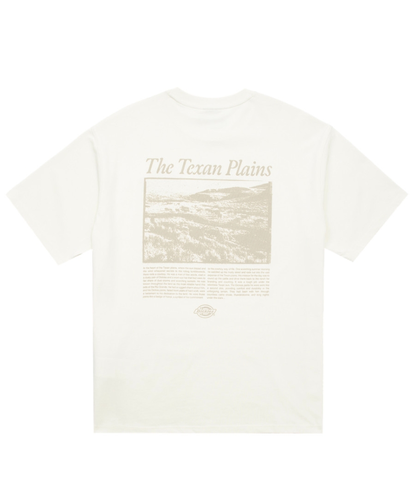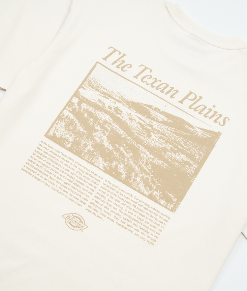 Landscape Graphic T-Shirt with Text on the Back This t-shirt comes with landscape graphic and text printed on the back. The simple color tone makes it easy to match with various styles. The brand logo is embroidered on the chest for added prominence. The loose fit is comfortable and the fabric is smooth, making it suitable for everyday wear.
