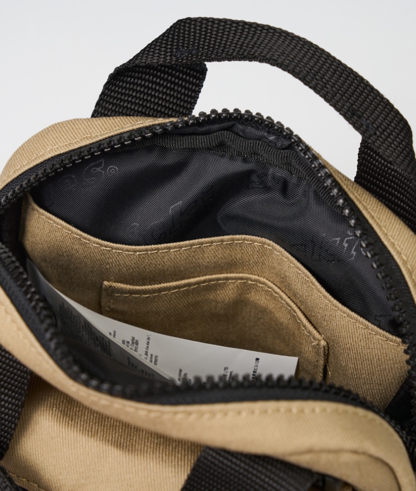 Shoulder bag with contrasting color design. The front has a brand label. The large front pocket with a wide bottom is another convenient feature. Inside the main compartment there is a small pocket, making it efficient to use. It can carry essentials compactly. Suitable for all occasions such as traveling.