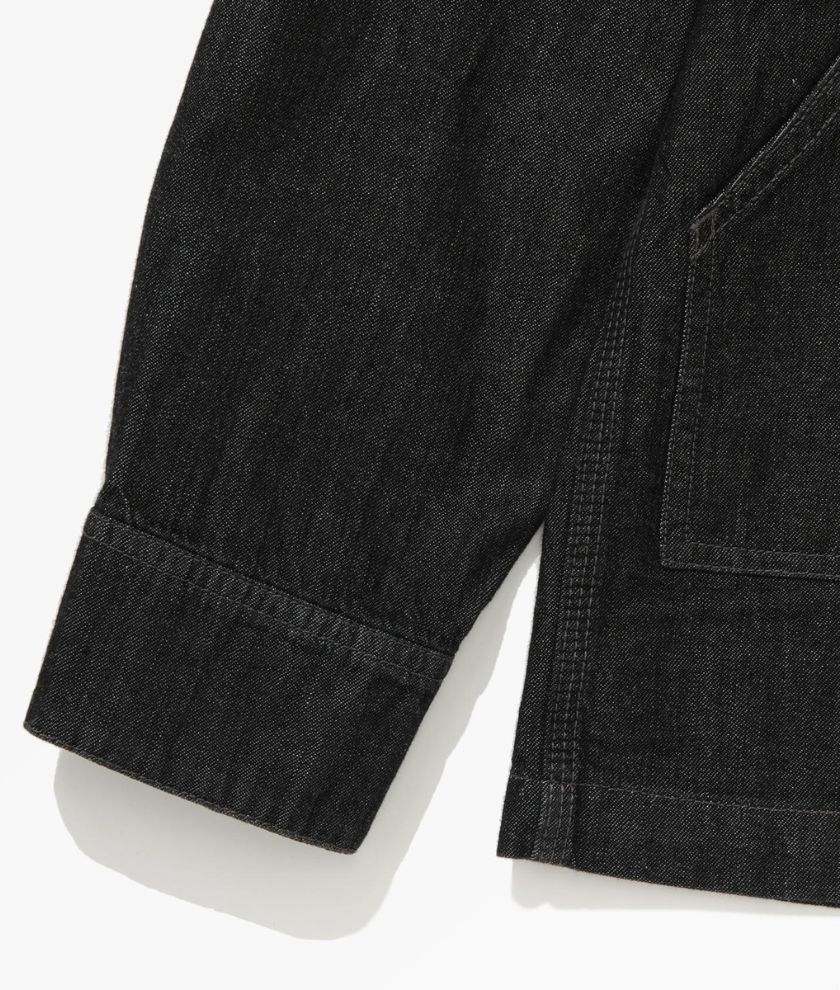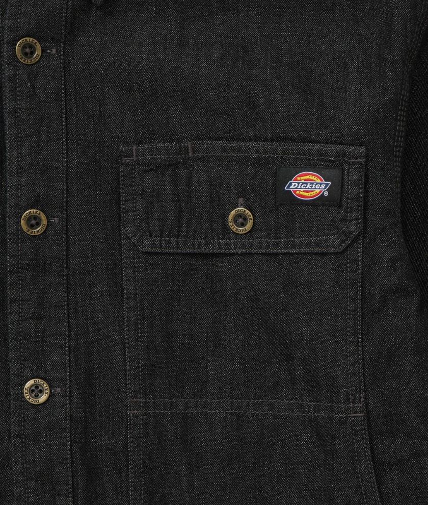 A denim shirt with workwear-like front pockets. The original buttons with a vintage feel are also a highlight. The chest flap features a brand logo patch as a single accent. The back yoke has been tucked to create a loose, easy-to-move silhouette.