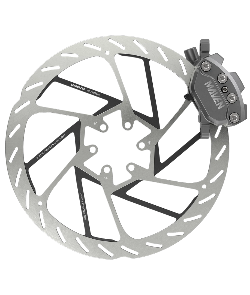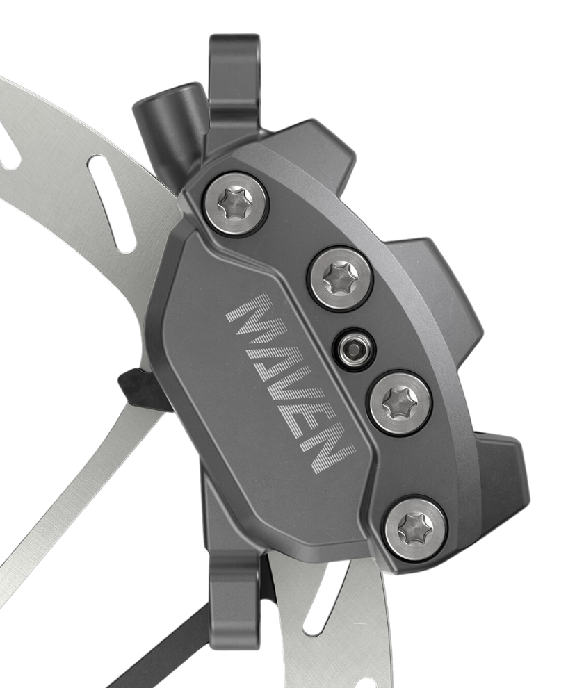 Modern mountain bikes have redefined what riders are capable of, pushing the requirements for heavy-duty power further than ever before. Maven is our answer to that evolution, with monstrous 18 and 19.5-millimeter pistons driving 50% more power than Code. But best-in-class power means nothing unless you’re able to harness it. The Maven Bronze lever body houses Swinglink, which translates rider input for progressive power throughout the lever pull, maintaining SRAM’s signature ride feel. And because of a stiff 4-bolt caliper that sheds an incredible amount of heat, that feel remains consistent, so the last corner feels like the first corner. But with so much baseline power on hand, there is more range than ever before to tune the ride qualities to exactly how you want with different pad materials, and rotor sizes. Maven Bronze features a Dark Polar Anodized finish, and for ease of customization includes tool-free Reach Adjust.
