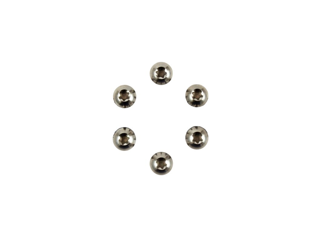 Superlight titanium grade 5 bolt kit for mounting 6-bolt disc brakes. The Kit contains 6 x Torx T25 Socket (ISO 7380) with low profile and regular head.