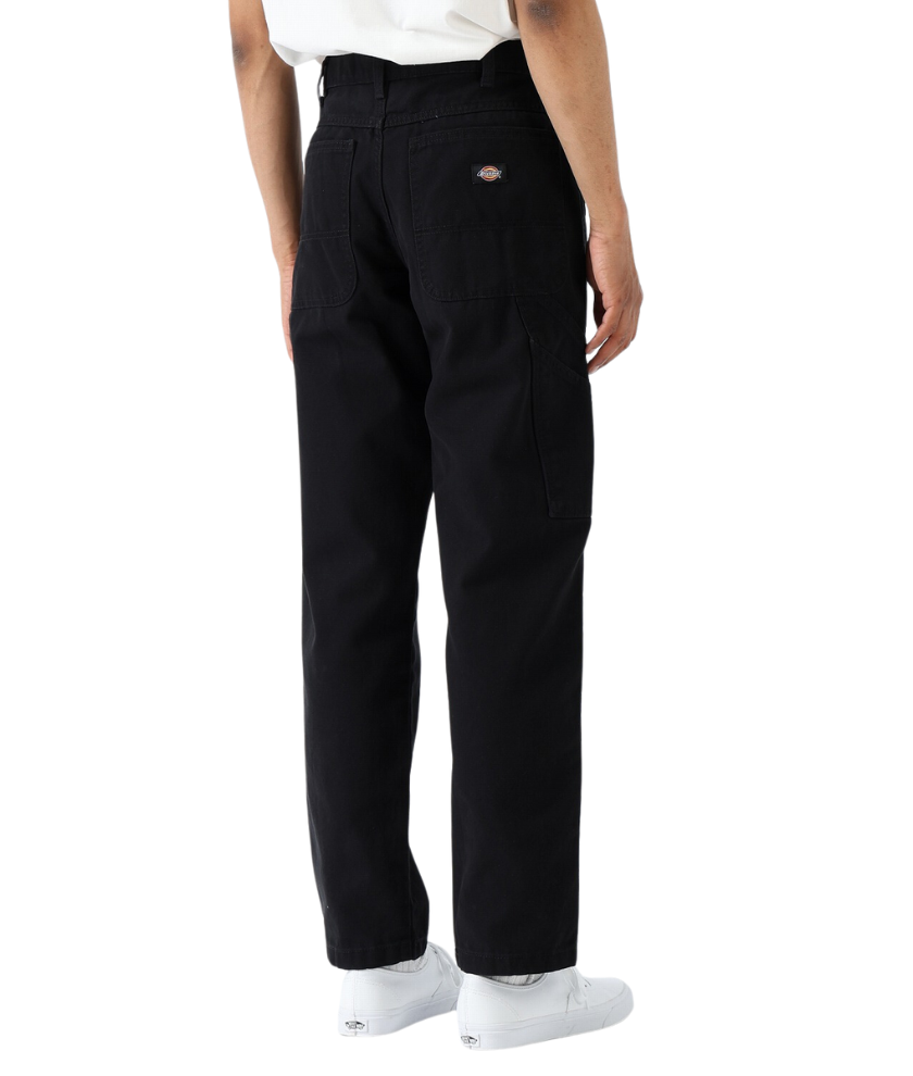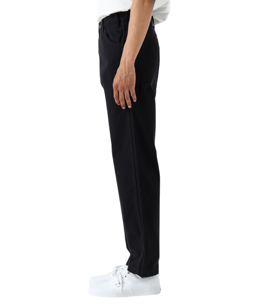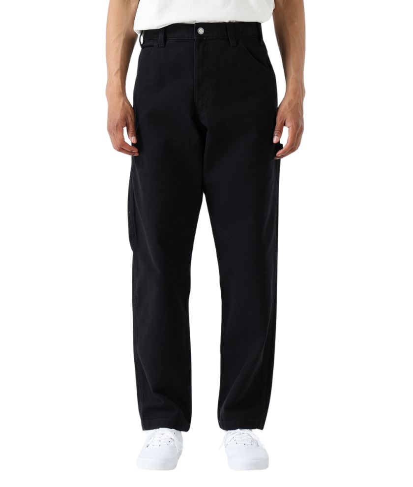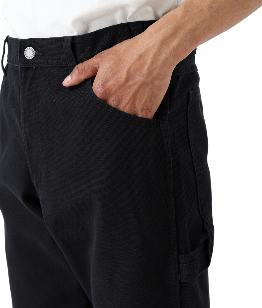 These pants have a workwear-like texture with hammer loops on the sides. They are made of 100% cotton and have a smooth feel that is appealing. The brand logo label on the back pocket adds an accent. The simple look makes them easy to wear and can be coordinated with a wide range of outfits.