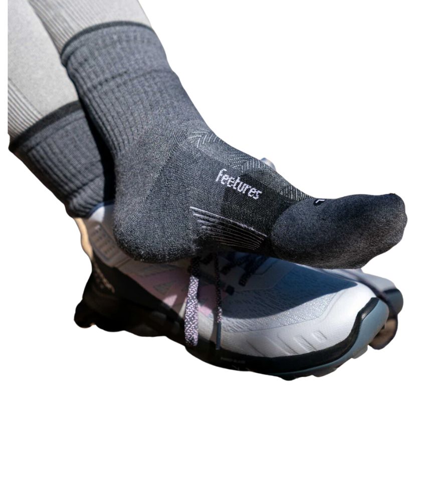 Introducing the all new Feetures Trail. Conquer your next hike or trail run and take on rougher terrain in a sock engineered with anatomical design and Targeted Compression, providing a Custom-Like Fit and reduced risk of blisters, plus Max Cushion for added impact protection.
